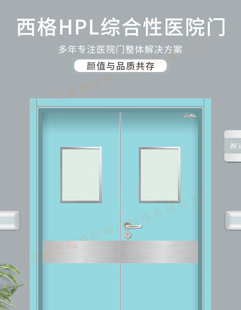 產品簡介:chnsige西格特種門,專業生產醫院門,醫院診室門,醫院辦公室門,醫院衛生間門,木質醫院門,鋼質醫院門,多鐘款式、顏色,尺寸可定制。