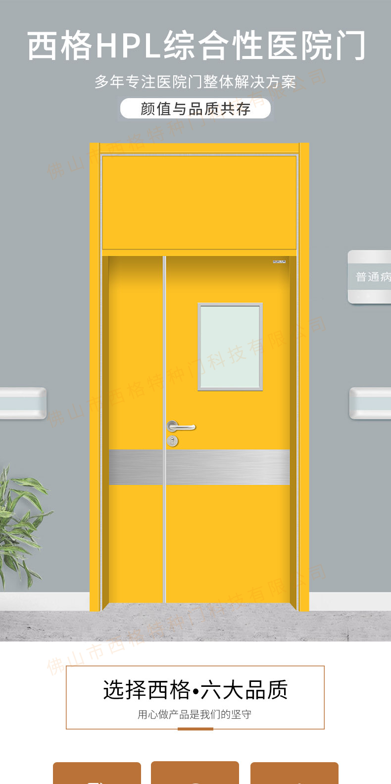 產品簡介:chnsige西格特種門,專業生產病房門,醫院病房門,醫院病房木門,病房木門,木質病房門,鋼質病房門,多鐘款式、顏色,尺寸可定制。